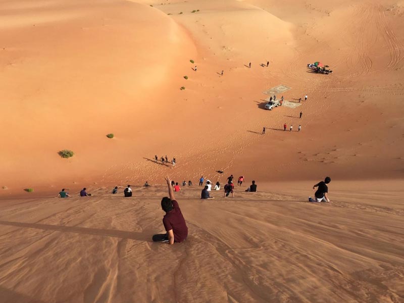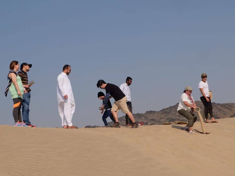 Next, you can engage in the thrilling activity; of sandboarding or skiing, which involves sliding down the dunes on a board or skis. For those thrill-seekers looking for a desert adventure, it's the ideal activity!