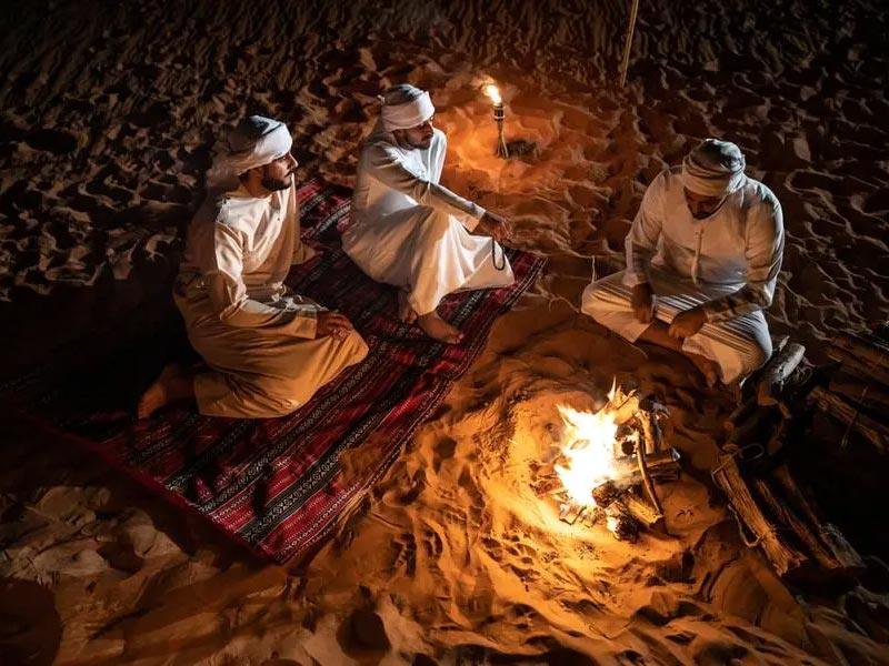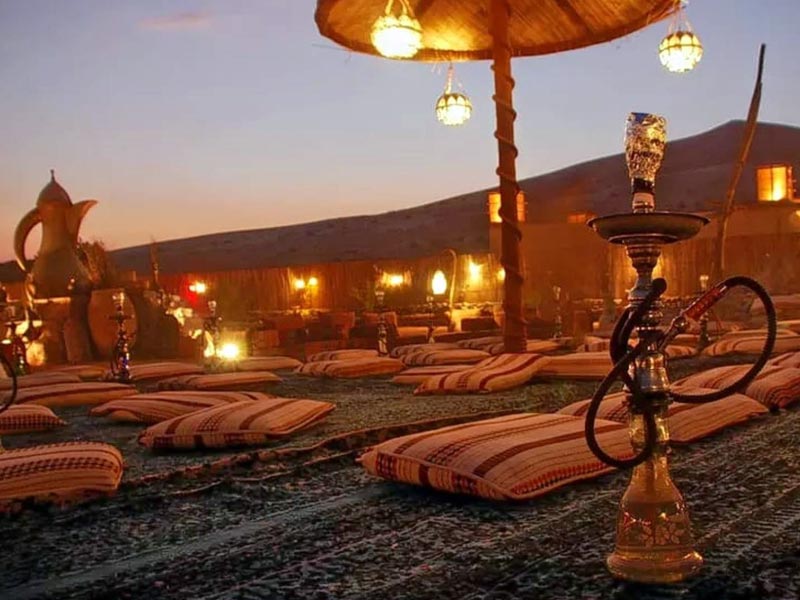 Afterwards, you can relax in the Arab-style tent and experience the serenity of the desert. Try some shisha along with it, and marvel at the dazzling array of stars twinkling overhead. Our tour guides will show constellations and tell fascinating stories about the stars and their significance in Arabian culture. Perhaps, it is a unique opportunity to connect with nature and appreciate the beauty of the universe. Don't forget to make a wish upon a shooting star and let the enchanting night sky leave you spellbound. Furthermore, you will be provided with sleeping bags and pillows to ensure a comfortable night's sleep outdoors.
