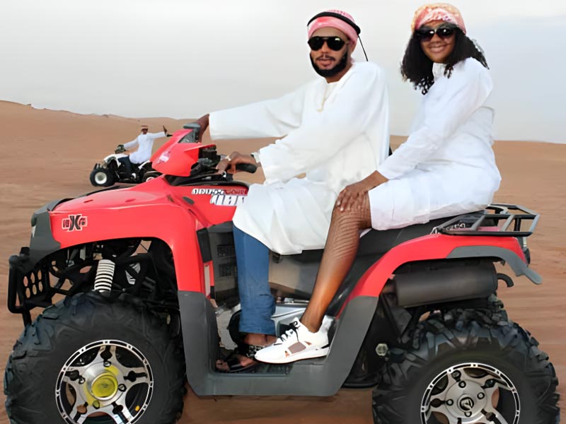 The tour's main highlight is; the one-hour quad bike ride, along with other thrilling activities such as; sandboarding, sand skiing, photoshoots and much more.