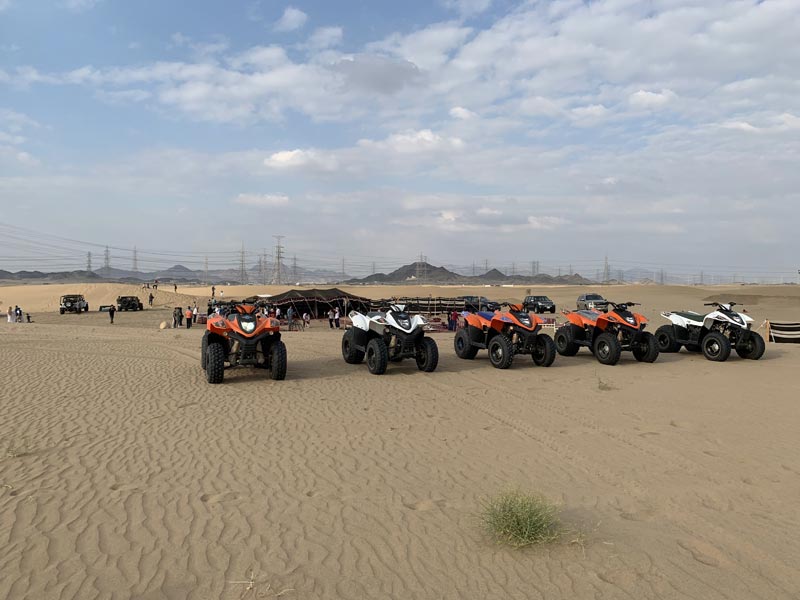 The quad-bike tour lasts for 4-5 hours. It is scheduled to get started in the morning and end by noon. As a result, our friendly tour guide will pick you up from your hotel or any other preferred location in Jeddah and ride you towards the vast desert, where an exhilarating adventure awaits!