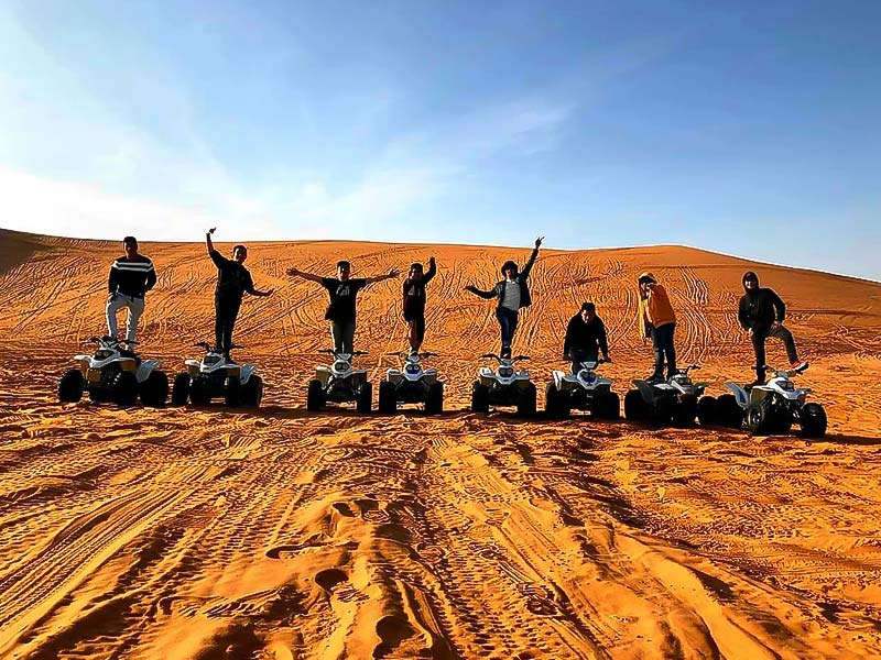 Up next, after a fun photoshoot, is the main highlight of this tour: the one-hour quad bike adventure! Our quad bikes are user-friendly and easy to ride. Thus, we ensure you experience the ultimate fun of exploring the beauty of this sandy land uniquely and in a memorable manner!